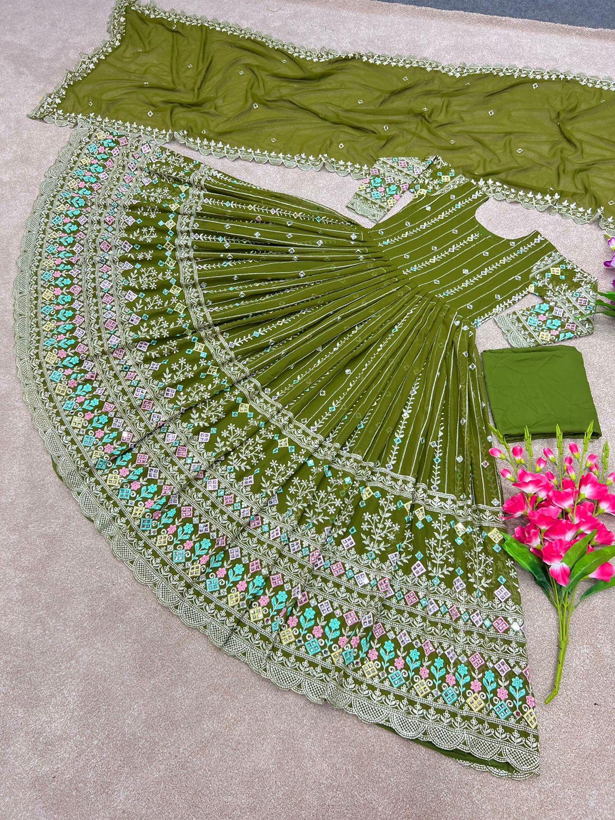 π *Gown Fabric* :Faux Georgette With *Heavy Embroidery Work With Real Mirror Handwork* With Full Sleeve