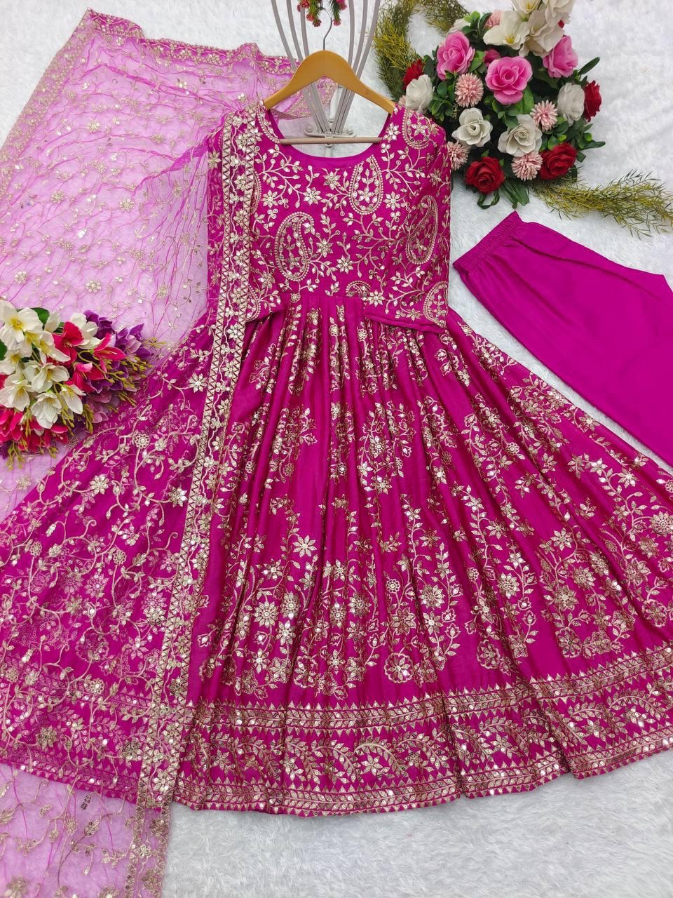 *Presenting New Collection Heavy Chinon Silk Gown -Pent Dupatta Set Fully Stitched Ready To Wear 🔥😍🥰*